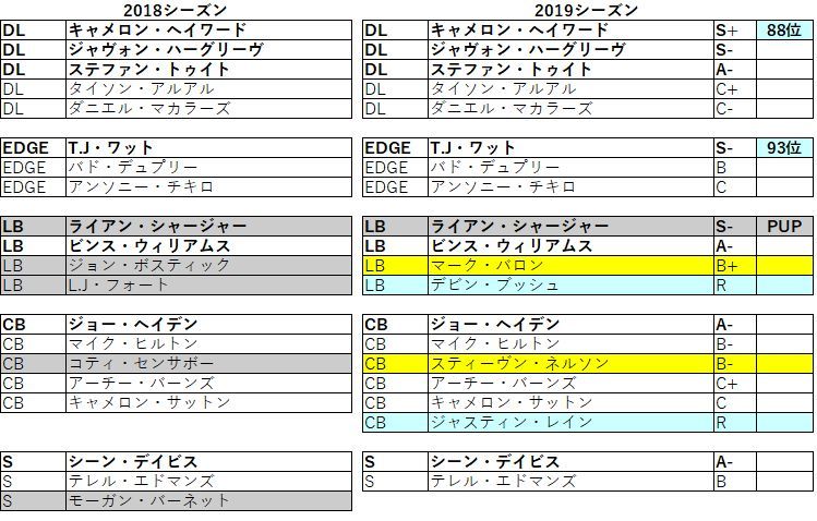 守備は戦力はほぼ維持出来た上に補強も楽しみなメンバーを揃えました。昨年よりも期待感は高いです。特にルーキーLBブッシュはチームの期待が高い選手です。