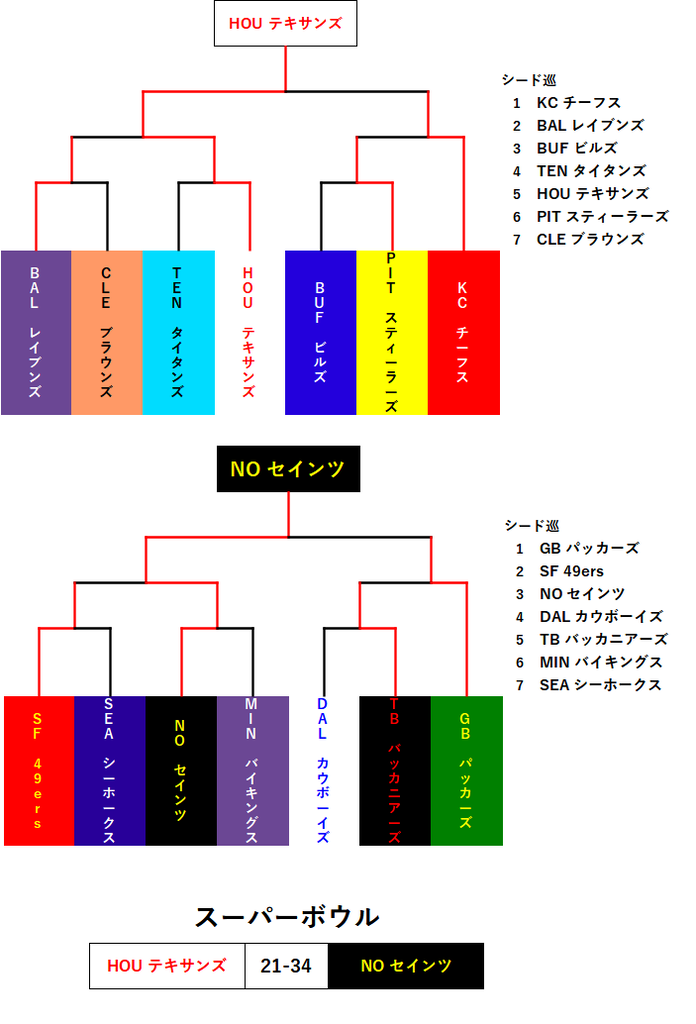 コルツも次点でしたし結構勝ち数もいい線行ってたかもと思えます。テキサンズがかなり予想外な状況にはなりましたね。QBワトソンだけでなんとかできるレベルじゃなかったのが残念です。