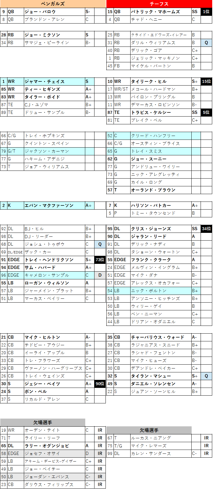 ã©ã¡ããæ»æã¿ã€ãã®ããŒã ã§ä»åãæ®ŽãåããæåŸ ã§ããã§ããããQBãããŒã ãºã®èª¿åãçžåœäžãã£ãŠããŠãããæãä»ããããªãç¶æ³ãšèšã£ãŠããããããããŸããããããªããšæ®Žãåãã«æå©ãªã®ã¯ããŒãã¹ã®ã»ãããªãšãç¡è¶æããçŸç¶éãç¶æ ã§ããããããããã¹ã¹ããŒã«ãªãã°ãã³ã¬ã«ãºã«ããã£ã³ã¹ã¯æ¥ããããããªãã®ã§ããã¬ãã·ã£ãŒã¯ç·©ãããšããªãããã«ãããã