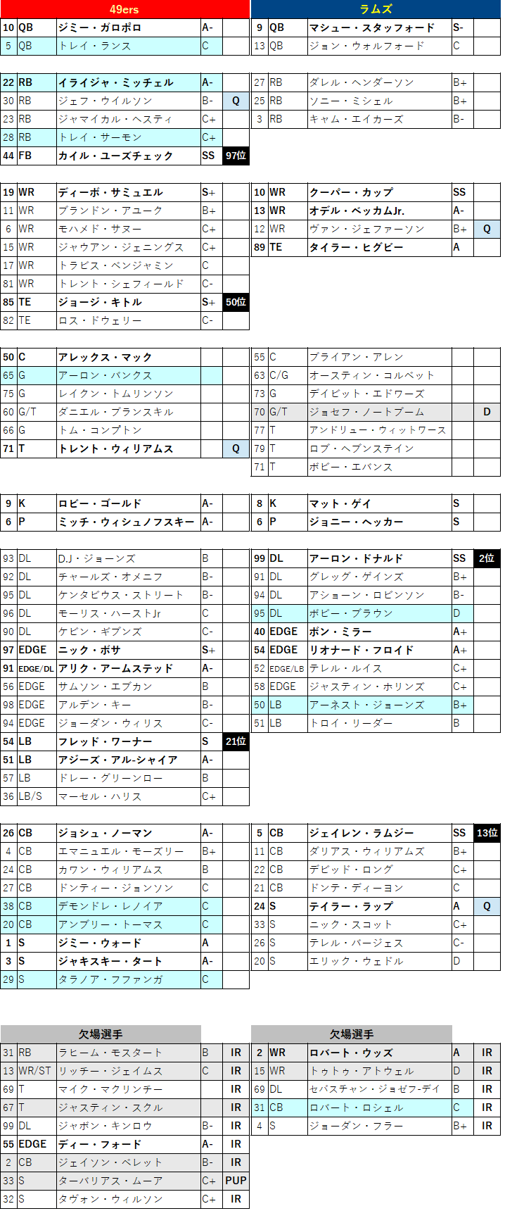 å³ã®é äœãNFLTOP100ã«éžåºãããéžæããã®é äœ