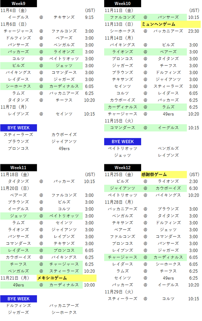 Week12ã¯æè¬ç¥ã²ãŒã ãè¡ãããŸããäŸå¹Žéãã©ã€ãªã³ãºãšã«ãŠããŒã€ãºã®ããŒã ã²ãŒã +ãã€ãã²ãŒã 1詊åãéå¬ãããŸãã