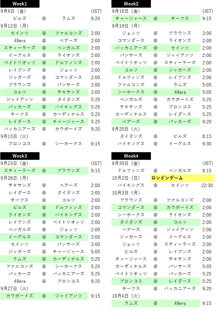 Week4ã¯ãã³ãã³ã²ãŒã ã®1ã²ãŒã ç®ãã€ãã³ã°ã¹ïŒ ã»ã€ã³ããéå¬ãããŸããæ¥æ¬æéã§22ïŒ30éå§ãªã®ã§èŠãããæé垯ã§ãã