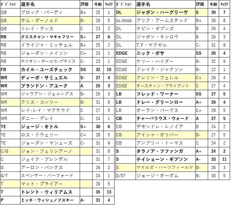 1巡目指名の無い5チームの大トリ49ersを書いていきます。