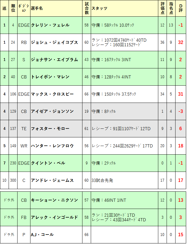 ä»åã¯PRO FOOTBALL REFERENCEã®Approximate Valueãšããéžæã®è©äŸ¡ãæ°å€ãããã®ã䜿ãç¹æ°ãã€ããŠããŸãã