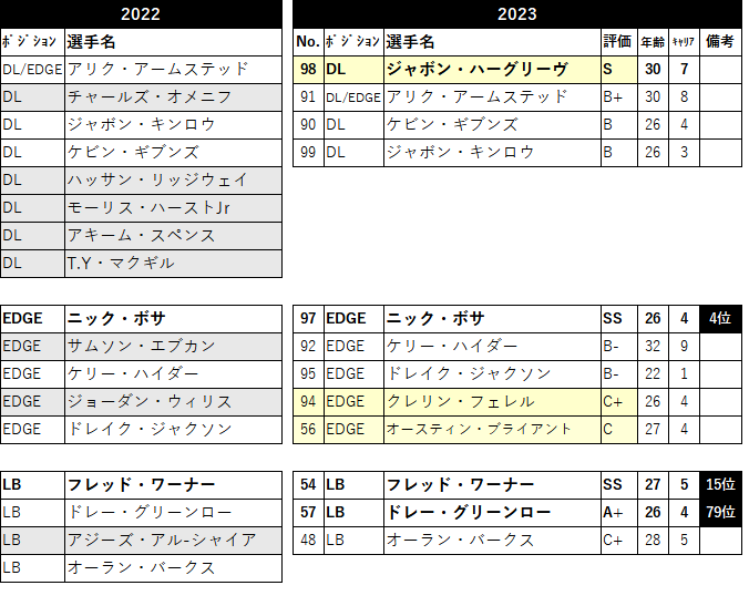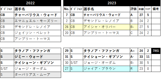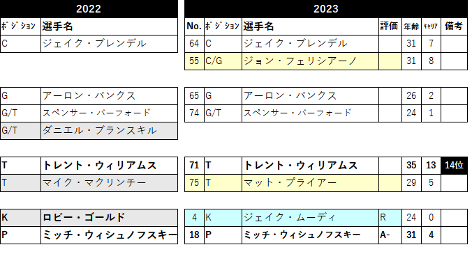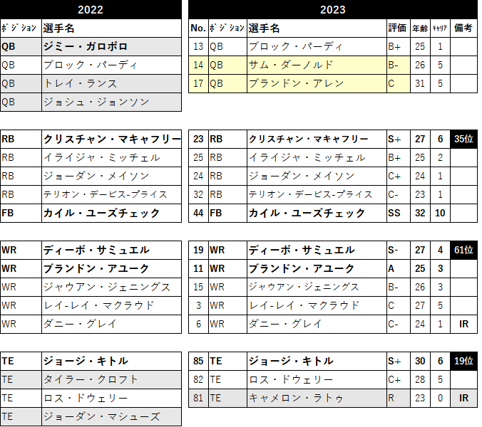 ãQBã3人åŒãç¶ãããããäžèšã®ããã«ãžããŒã»ã¬ãããããããã¯ã»ããŒãã£ãå®å®ãããã¹æ»æãéäžå å ¥ã®RBã¯ãªã¹ãã£ã³ã»ããã£ããªãŒãã©ã³æ»æãçœåŒããèŠäºãªåŸç¹åãšãªããŸããããããOLãå®å®ããŠããããããšãèšããŸããæ»æã¯ä»å¹Žããããç¶æãããã§ããã
