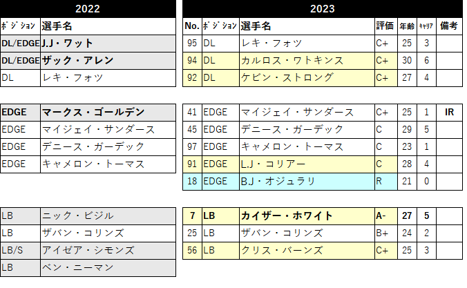 ãä»å¹ŽLBããSã«ã³ã³ããŒãäºå®ã ã£ãã¢ã€ã¶ã€ã¢ã»ã·ã¢ã³ãºã¯ãã¬ã·ãŒãºã³ã®ããã©ãŒãã³ã¹ãæªãSã«ã³ã³ããŒããé æ«ããæãã§ãããããããããšãããä»å¹Žã§å¥çŽãåããåã«ãã¬ãŒãã§ãžã£ã€ã¢ã³ãã«ç§»ç±ãšãªããŸãããå 1å·¡ç®æåã®LBã察䟡ã7å·¡ç®ãšã®äº€æãã»ãŒæŠåå€éåã«è¿ã圢ãªã®ãå¯ãããšããã§ããããžã£ã€ã¢ã³ãã¯ããããéžæãèŠè¿ãå ŽãšããŠã¯ãããããŒã ãããããŸããããæšå¹Žã®äŸããããŸããã