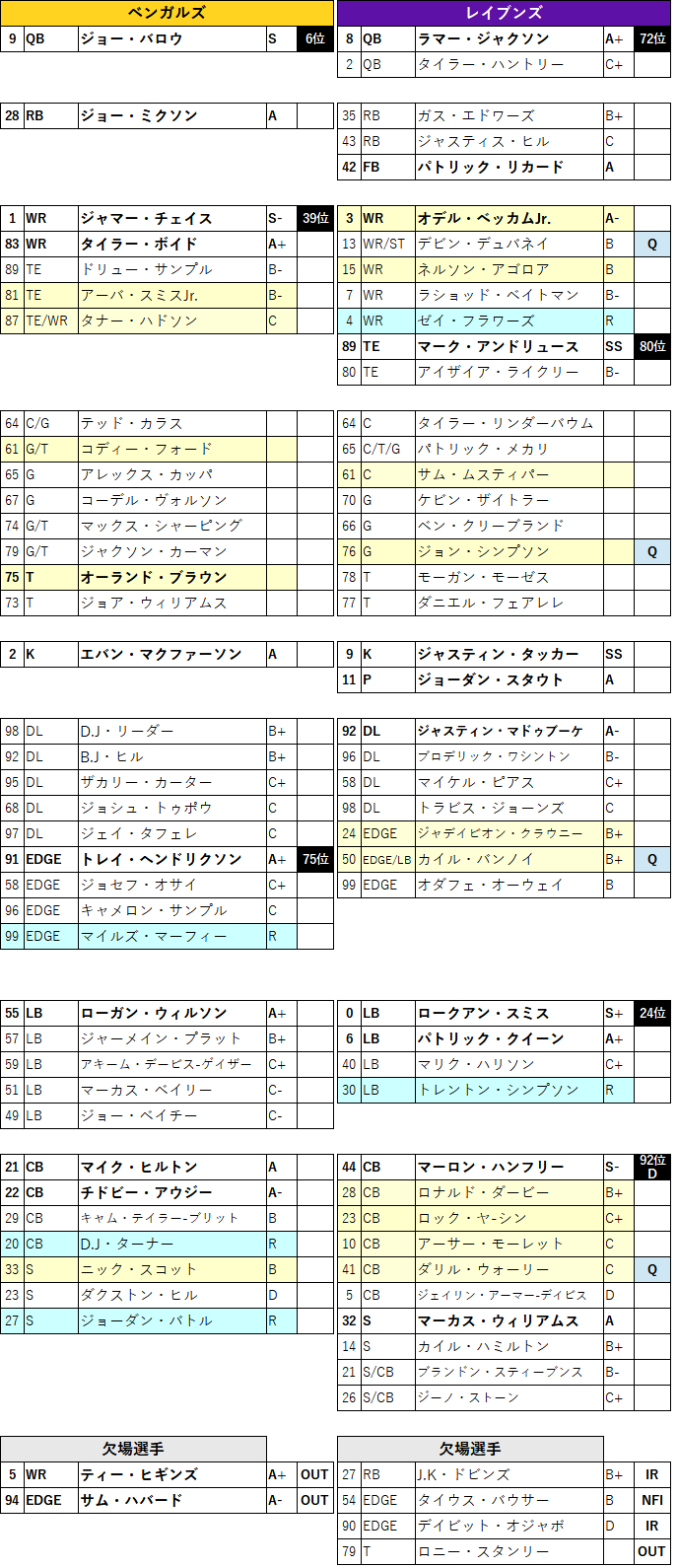 ・ベンガルズO# vs レイブンズD#