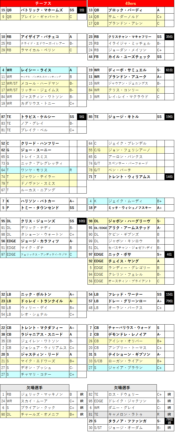 ãã©ã³ã¯åã®ãªãŒãã£ã³ã°ã©ãã·ã£ãŒããšã£ãRBã¯ãªã¹ãã£ã³ã»ããã£ããªãŒã®å°å µã§ãããããšæããŠããã©ã³ã¯è åšã§ãããšã«ããæãŸãã«ããäžã«ãã¯ãŒããããªãã«ãããšãããæåŒ·ã¯ã©ã¹ã®ã©ã³ã§ãã察å³ããã§ãããLBããã¯ã»ãã«ãã³ããã£ãããšå°ããããããããŒãã¹ã®ãšããŠã¯æåŸ ãããã§ãããDLãã£ãŒã«ãºã»ãªã¡ãããé¢è±ããã®ãã¡ãã£ãšçããšããã§ã¯ãããŸãã