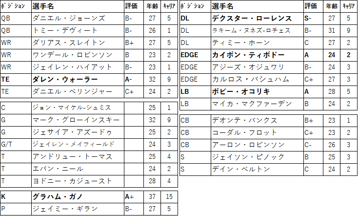 ãã ãããæã£ãã§ããããæšå¹Žã®FAã§QBãããšã«ã»ãžã§ãŒã³ãºãšã®4幎160MãRBã»ã€ã¯ãªã³ã»ããŒã¯ãªãŒãšã¯ã¿ã°ã®1幎å¥çŽã絶察éã ã£ãããšã