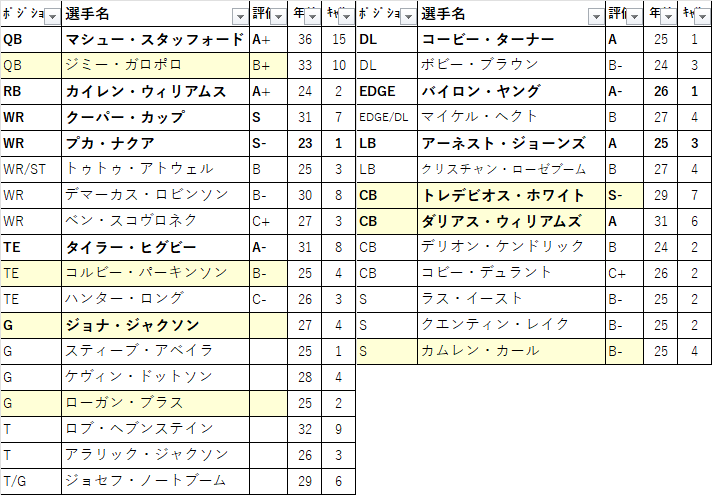 ãã§ãä»å¹Žã®è£åŒ·ã§ããããã£ã1.2Mã®ãµã©ãªãŒã§QBã©ãã»ã«ã»ãŠã£ã«ãœã³ãç²åŸãšãããããä¿éºã§2025幎6å·¡ç®ãšãã¬ãŒãã§QBãžã£ã¹ãã£ã³ã»ãã£ãŒã«ãºãç²åŸããªããããããããã
