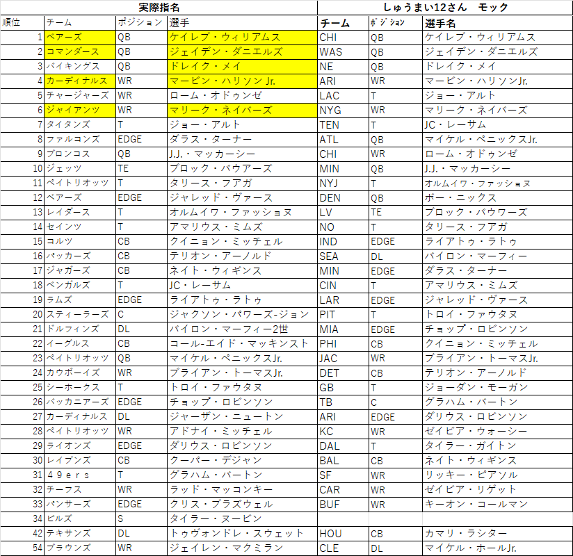 上位指名はしっかりと当ててきましたね。ただチャージャーズの指名によって色々狂ったドラフトとなっちゃった印象ですね。そこは流石に予想できた人は少なかったと思います。そしてファルコンズからもう当てられる人はいなかったのかなと。