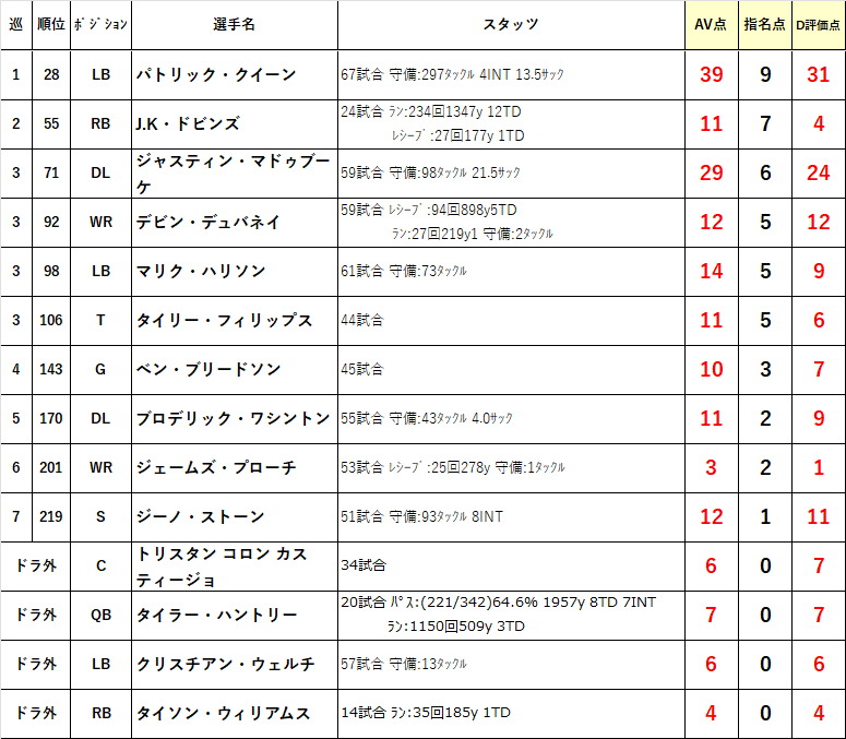 ä»åã¯PRO FOOTBALL REFERENCEã®Approximate Valueãšããéžæã®è©äŸ¡ãæ°å€ãããã®ã䜿ãç¹æ°ãã€ããŠããŸãã