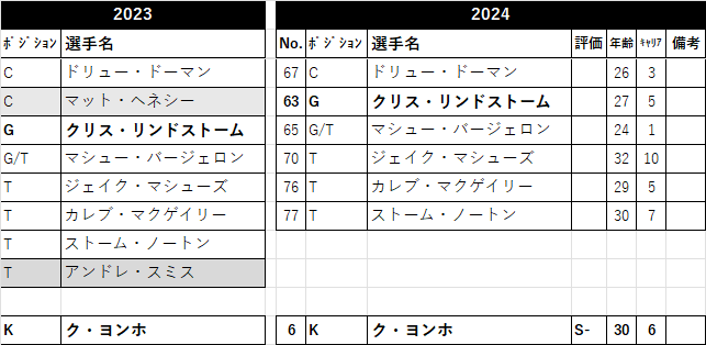 šéšèœãšãããšã«ãªã£ãçµäºã®ãç¥ããã«ãªãã®ã§ããªããšãä¹ãè¶ããªããã°ãªããªããä»å¹Žã®ã¹ã±ãžã¥ãŒã«ã¯ãªãŒã°ã§2çªç®ã«ãããããšãããQBããã£ããè£åŒ·ãããã¡ã«ã³ã³ãºã«ãšã£ãŠã¯æå©ãªå±éãããããªãã